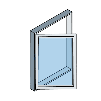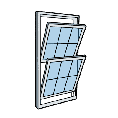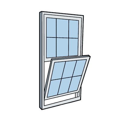 Single-hung windows have two sashes (the part of the window that holds the glass pane): one fixed sash on top and one moveable sash on the bottom, which can slide up and down. This makes single-hung windows rectangular in shape and in a vertical orientation.